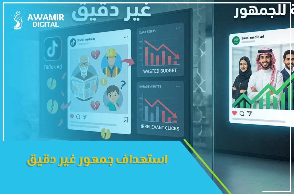 واحد من أكبر أسباب فشل اعلانات تيك توك هو استهداف جمهور غير دقيق، كثير حملات تصرف ميزانية كبيرة على ناس ما لهم علاقة بالمنتج أو الخدمة، وهالشي يقلل التفاعل ويضعف نتائج التسويق الرقمي والتسويق الإلكتروني، مع خدماتنا الرقمية نرفع ظهور علامتك التجارية على محركات البحث والسوشيال ميديا.